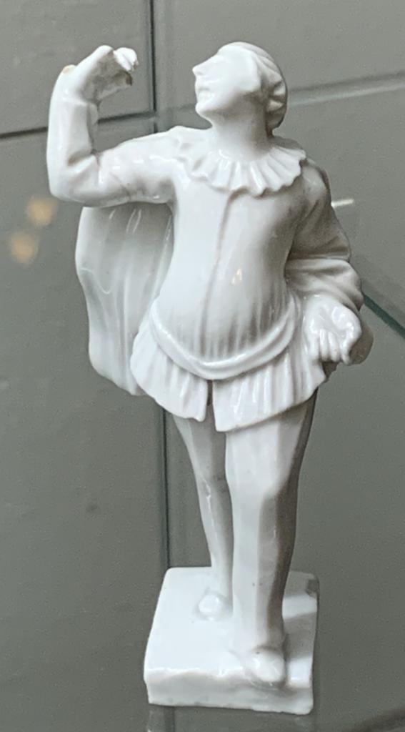 Nella definizione della piccola plastica prevalgono i valori lineari, a tutto vantaggio dell’essenzialità del modellato. Il profilo e la torsione del capo sono tipici della manifattura; inoltre, si rilevano notevoli analogie nella resa anatomica con un Arlecchino della Collezione Schubert di Milano, datato 1755-1765.